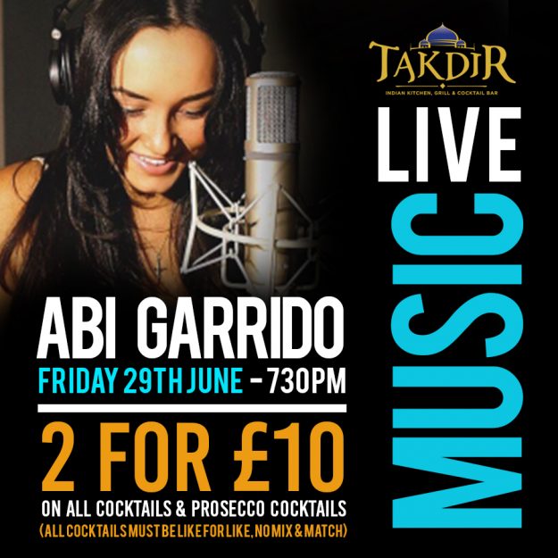 We are excited to announce that Abi Garrido will be playing LIVE on Friday 25th May from 7:30pm!